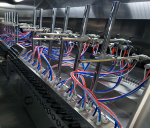 地軌式自動噴涂線介紹地軌式自動噴涂線也叫固定噴槍噴涂線或spindle自動噴涂線,原理就是把噴槍固定起來,根據(jù)工藝要求進行噴涂。其功能集地面自動輸送線,固定自動噴涂,自動烘干T等一體化系統(tǒng),并結合無塵凈化車間,恒溫控制,廢氣處理系統(tǒng)組成,可以根據(jù)需求設計兩涂兩烤,三涂三烤,四涂四烤,再加上UV固化設備。地軌式自動噴涂線特點與優(yōu)勢:1.起到靜電除塵,噴涂、烘干、UV固化自動噴涂流水的功能,適合批量連續(xù)生產(chǎn),產(chǎn)量高,噴涂均勻。2.輸送鏈條與軌道接觸點配置軸承,配合精準的軌道,運轉時輕快平穩(wěn)不抖動,3.靜電除塵系統(tǒng),進口高要靜電發(fā)生器,離子風嘴可上下前后機械式調(diào)節(jié),可配合產(chǎn)品大小不同而變化,加上工件自動,除塵無360度死角。4.固定式自動噴槍可用于步進是或者聯(lián)系的在線噴涂,及簡單又實用。采用工件高速自動噴涂,行程及速度可調(diào)節(jié),靈活性大,無死角。5.水簾環(huán)保噴房設計,氣流順暢潔凈,噴房室內(nèi)導流板機擾流板的精心配置,讓亂流遠離工件,并快速循環(huán)利用。6.UV固化室內(nèi)設都說進口等,任意調(diào)節(jié)照射距離與角度。可以任意選擇燈工作數(shù)量,根據(jù)照射強度選擇,工件自動旋轉設計,保證了工件照度均勻。好了,以上就是有關地軌式自動噴涂線介紹,大家學會了嗎?